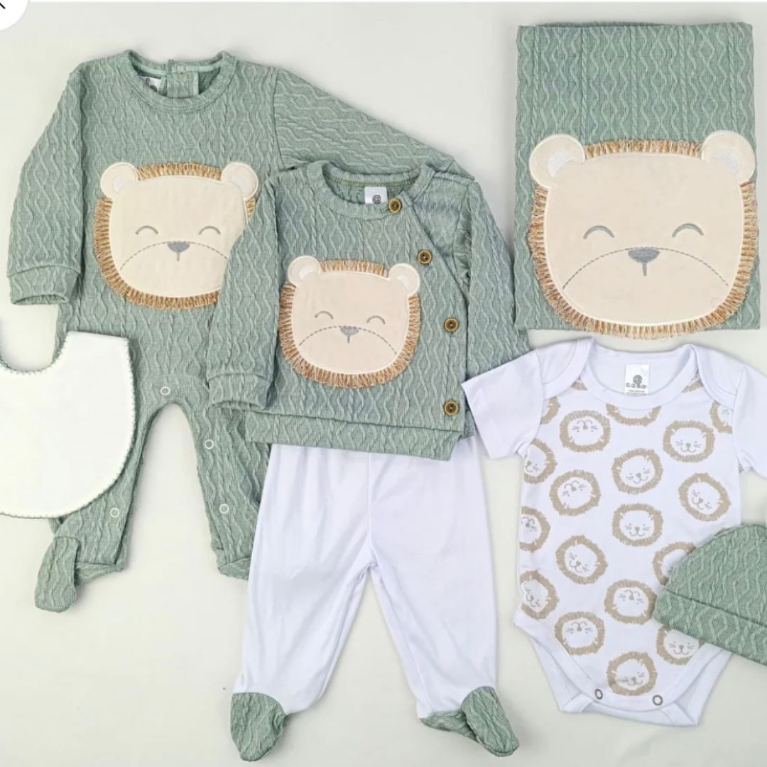 Incluye gorrito, buzo, body, cobija, pijama, camisilla y pantalón. Además, tiene un nivel bordado de un animalito cebra.