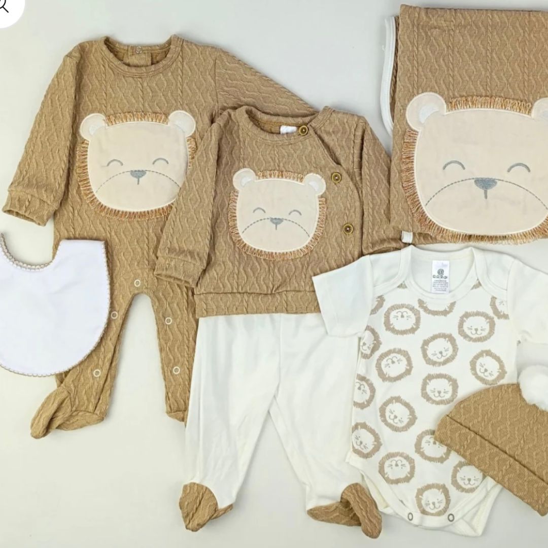 Incluye gorrito, buzo, body, cobija, pijama, camisilla y pantalón. Además, tiene un nivel bordado de un animalito cebra.